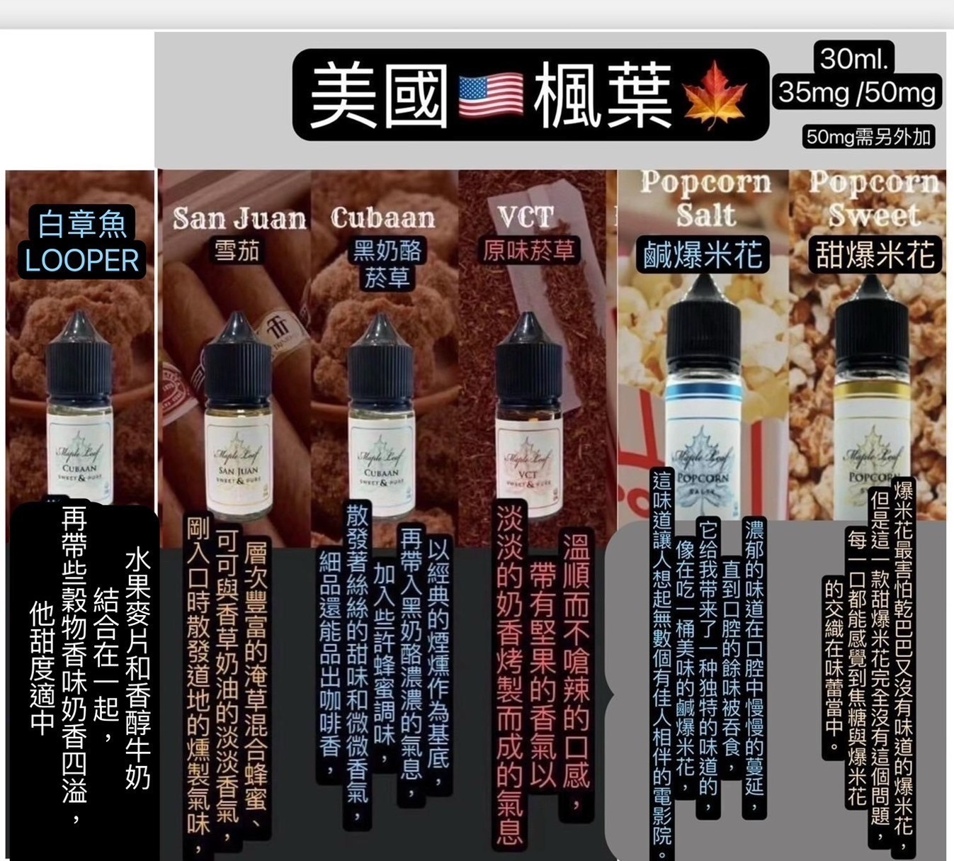 搶先評價 “原廠MAPLE LEAF 楓葉加拿大30ML-楓葉vct 小油楓葉黑奶” 取消回覆