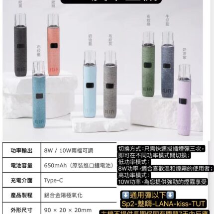 細膩絲滑: 霧化效果出色,帶來細膩絲滑的口感,讓您享受更順暢的吸煙體驗。