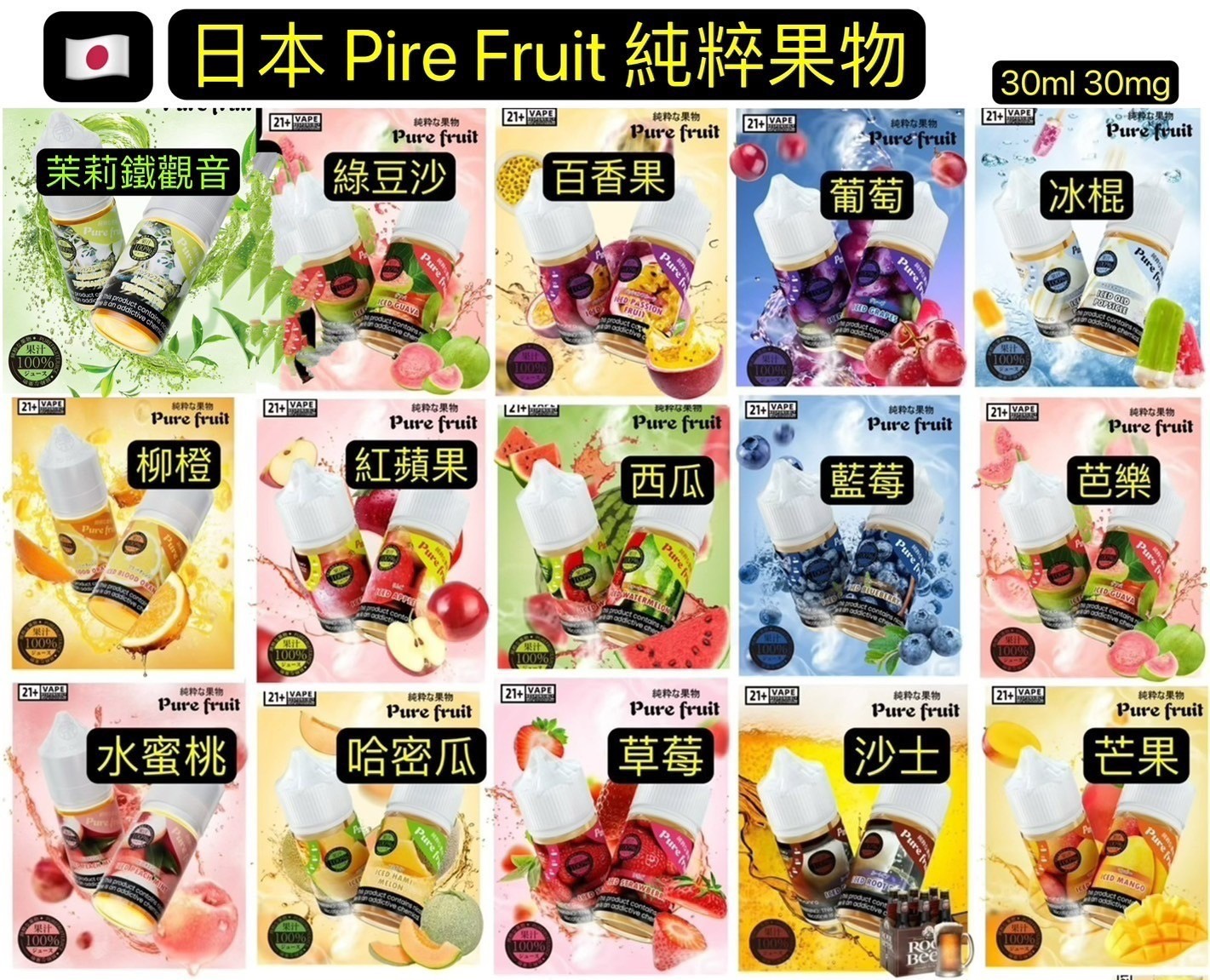 首頁 小霧油-各大品牌果汁 正版日本 Pure Fruit 純粹果物系列30ML純粹果物小油