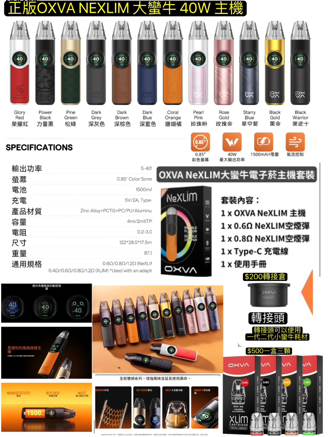 正版OXVA NEXLIM 大蠻牛小蠻牛三大OXVA NEXLIM主機NEXLIM空彈耗材NEXLIM大蠻牛空彈轉接頭