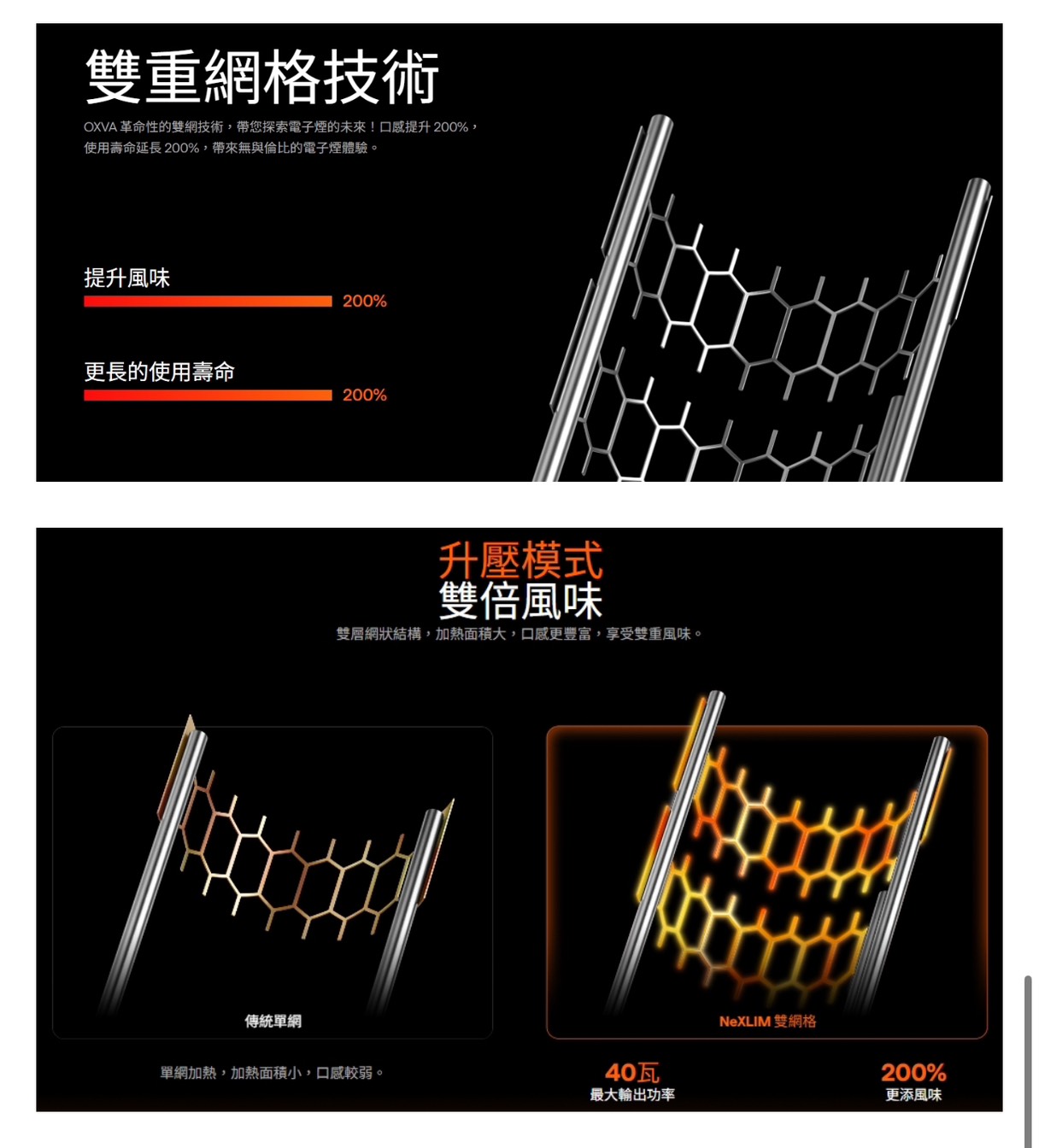 雙網格技術:風味還原提升 200%,線圈壽命更長。