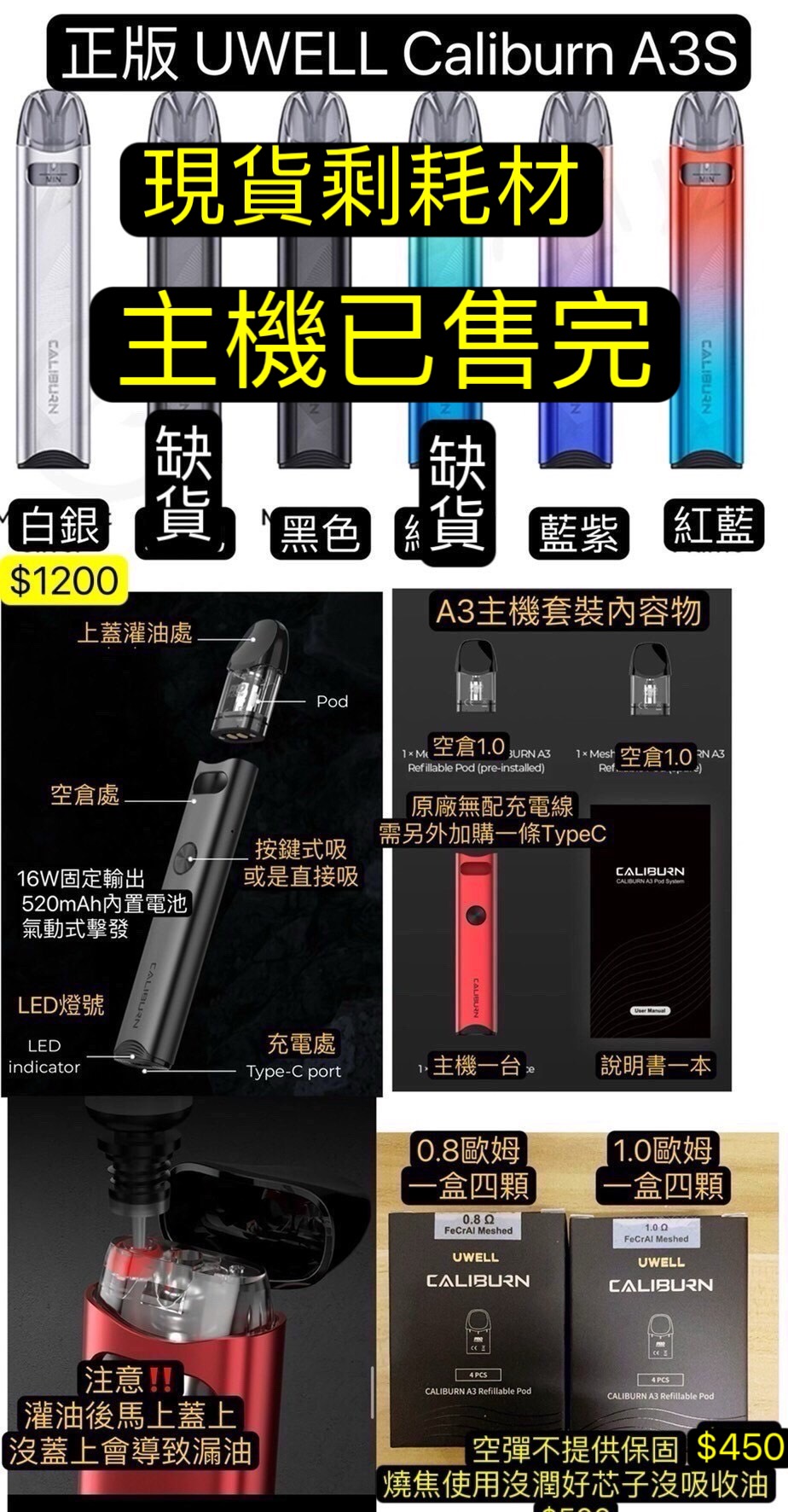 Uwell Caliburn A2咖哩棒A2主機A2空彈0.9A2耗材1.2咖哩棒A2耗材